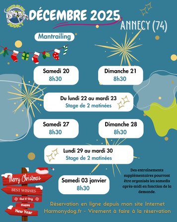Harmony Dog vient sur la région Annécienne (74 - Haute-Savoie) , à chaque vacances scolaires de la zone C, pour vous retrouver lors de stages de 2 ou plusieurs jours.